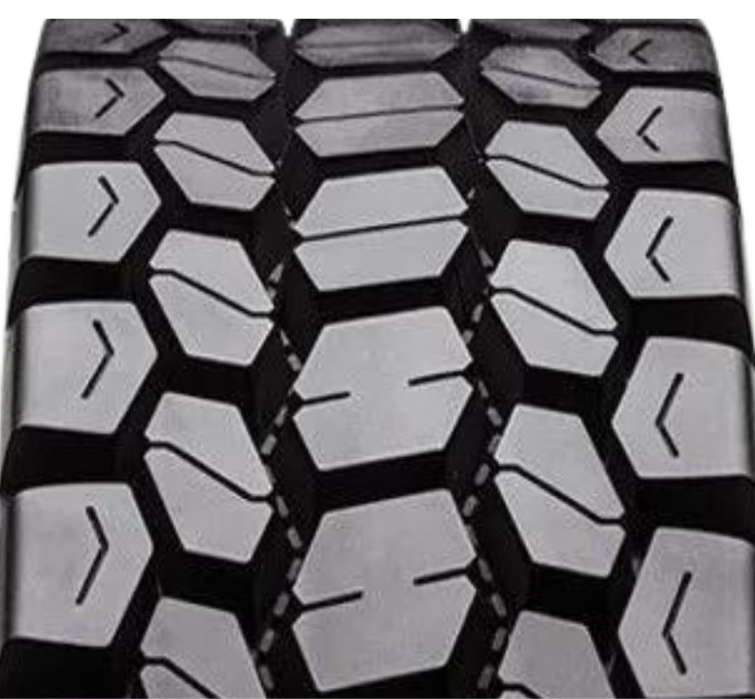 - Open shoulder drives tread for excellent traction while delivering long mileage and resistance to irregular wear.